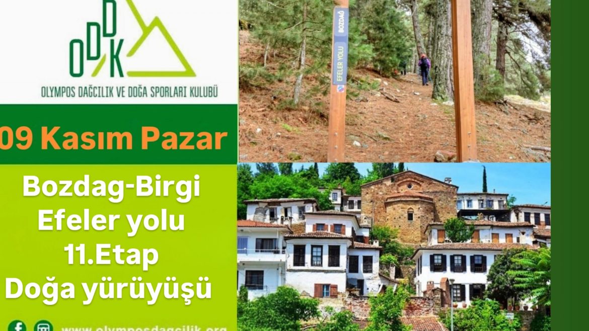 Olympos Dağcılık Kulübü olarak, bu hafta sonu Efeler yolunun 11.etabı olan Bozdağ-Birgi parkurunu yürüyeceğiz.
