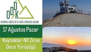 16 Ağustos gece kaynaklardan başlayıp 17 Ağustos sabahı gün dogumunda Nif zirvede olacağımız bir gece yürüyüşü planladık.