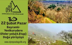 Olympos Dağcılık Kulübü olarak, 24 Mart pazar günü, doğa yürüyüşümüze , Efes Mimas Yolu 9. Etap ile devam ediyoruz. Yürüyüşümüze Selçuk Belevi Köyünden başlayacağız. Keçi Kalesine çıkacağız. Efes Mimas Yolu izlenecek ve yürüyüş Barutçu Köyünde sona erecektir.