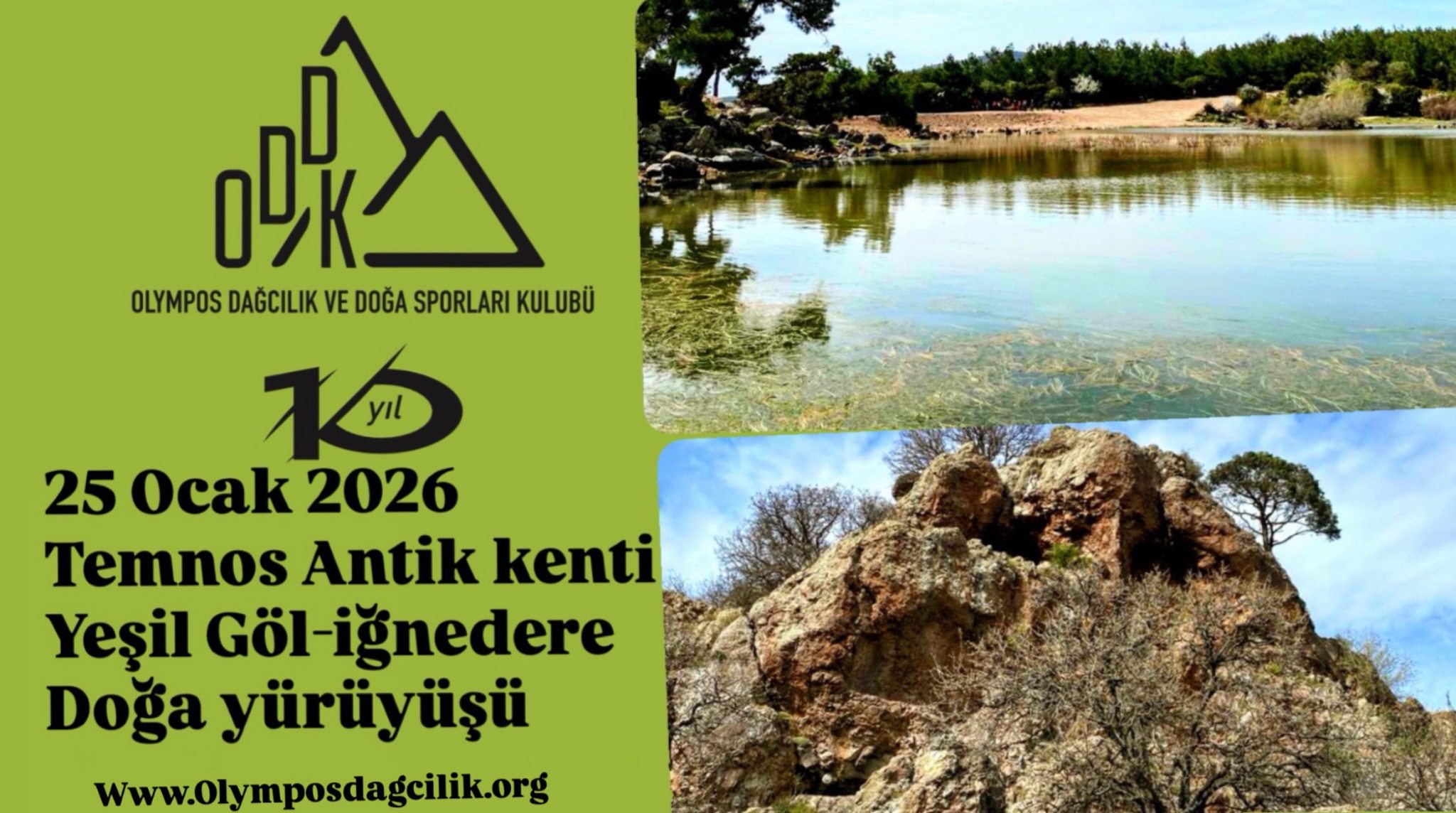25 Ocak Pazar günü Menemen’in Görece ve iğnedere köyleri arasında, Temnos antik kenti ,Görece kalesi ve Yeşil göl (Aygır gölü) parkurunda yürüyeceğiz.